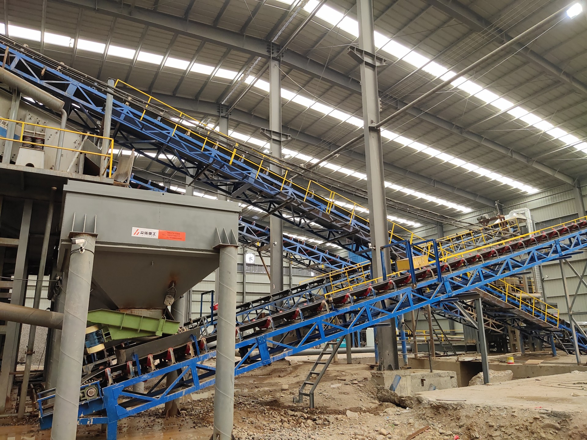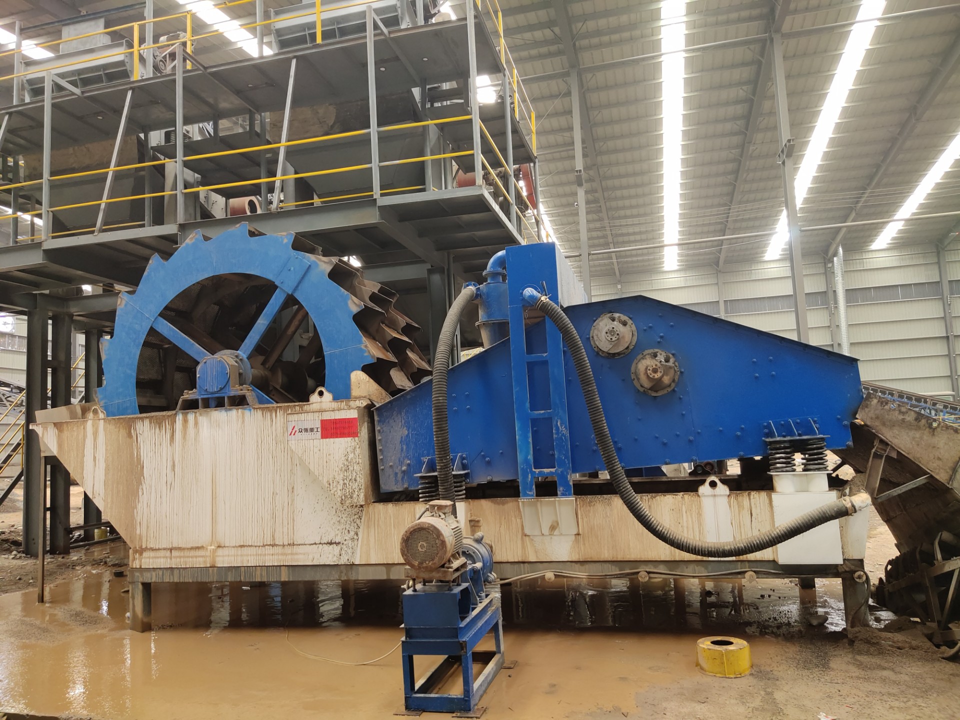 設(shè)備配置:喂料機(jī)、顎式破碎機(jī)、圓錐破碎機(jī)、振動篩、制砂機(jī)、洗砂機(jī)、污水罐